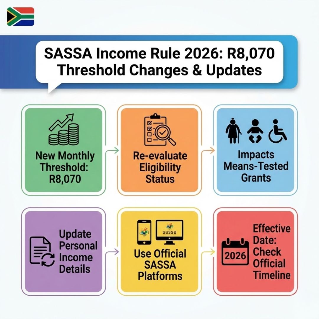 The South African Social Security Agency (SASSA) has announced a new income eligibility rule that will take effect in 2026. Under this updated regulation, social grant applicants and existing beneficiaries must earn less than R8,070 per month to qualify for assistance. The change is designed to ensure that social grants are directed toward households that need support the most, while also helping SASSA maintain the long-term financial sustainability of the grant system across South Africa.